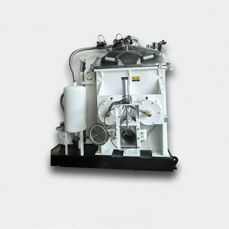? 真空/氮氣接口,可在捏合階段完成脫泡、脫水 - 中段——液壓下閘+強制喂料